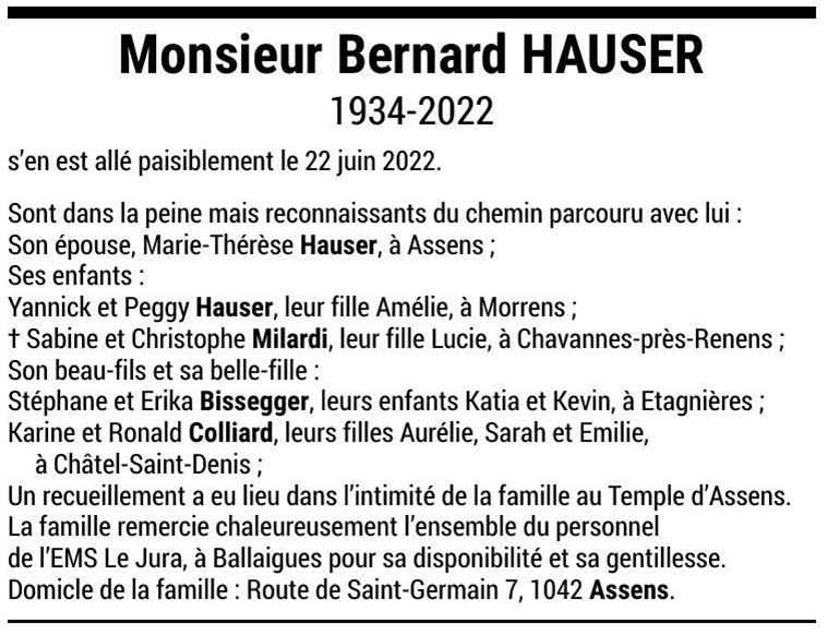 Monsieur Bernard HAUSER