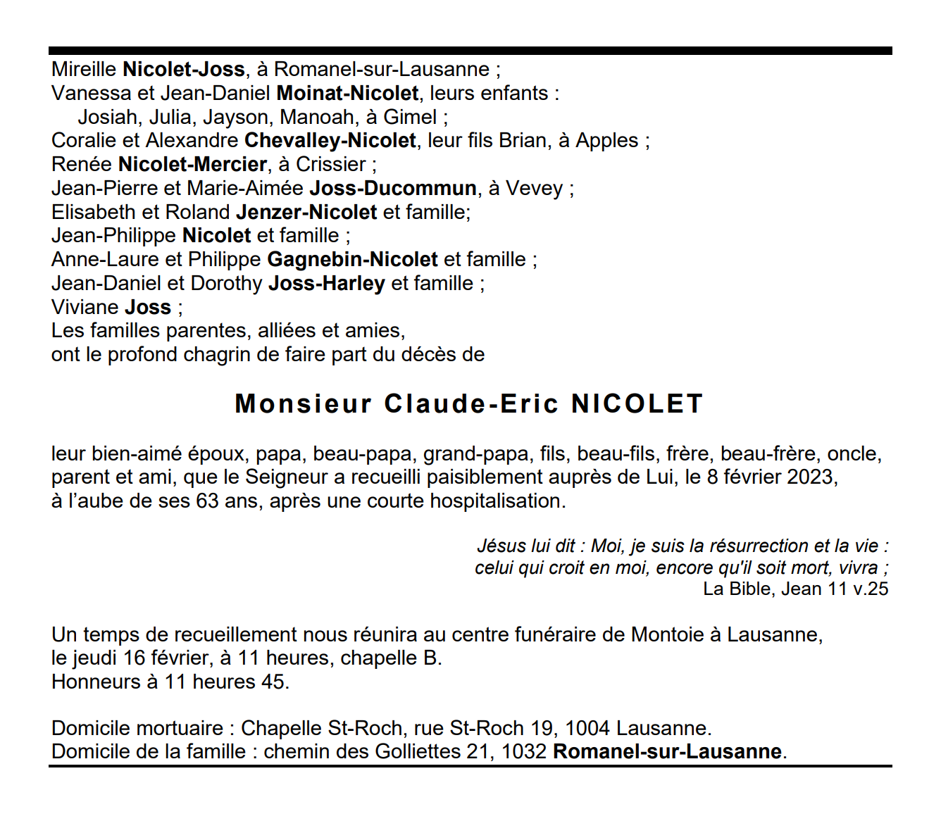 Monsieur Claude-Eric NICOLET