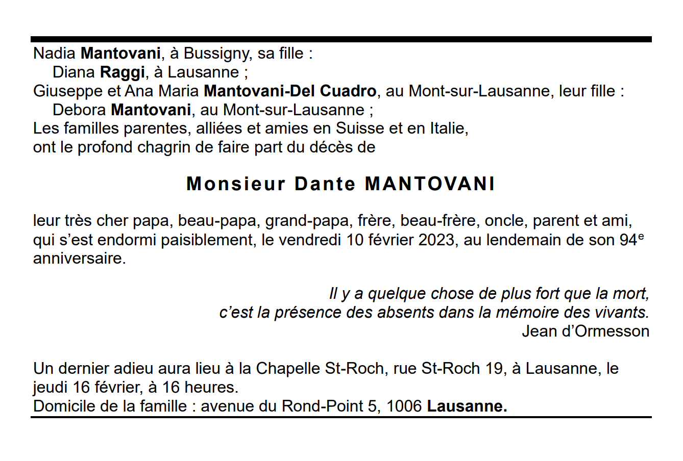 Monsieur Dante MANTOVANI