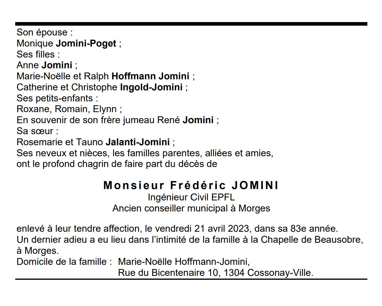 Monsieur Frédéric JOMINI