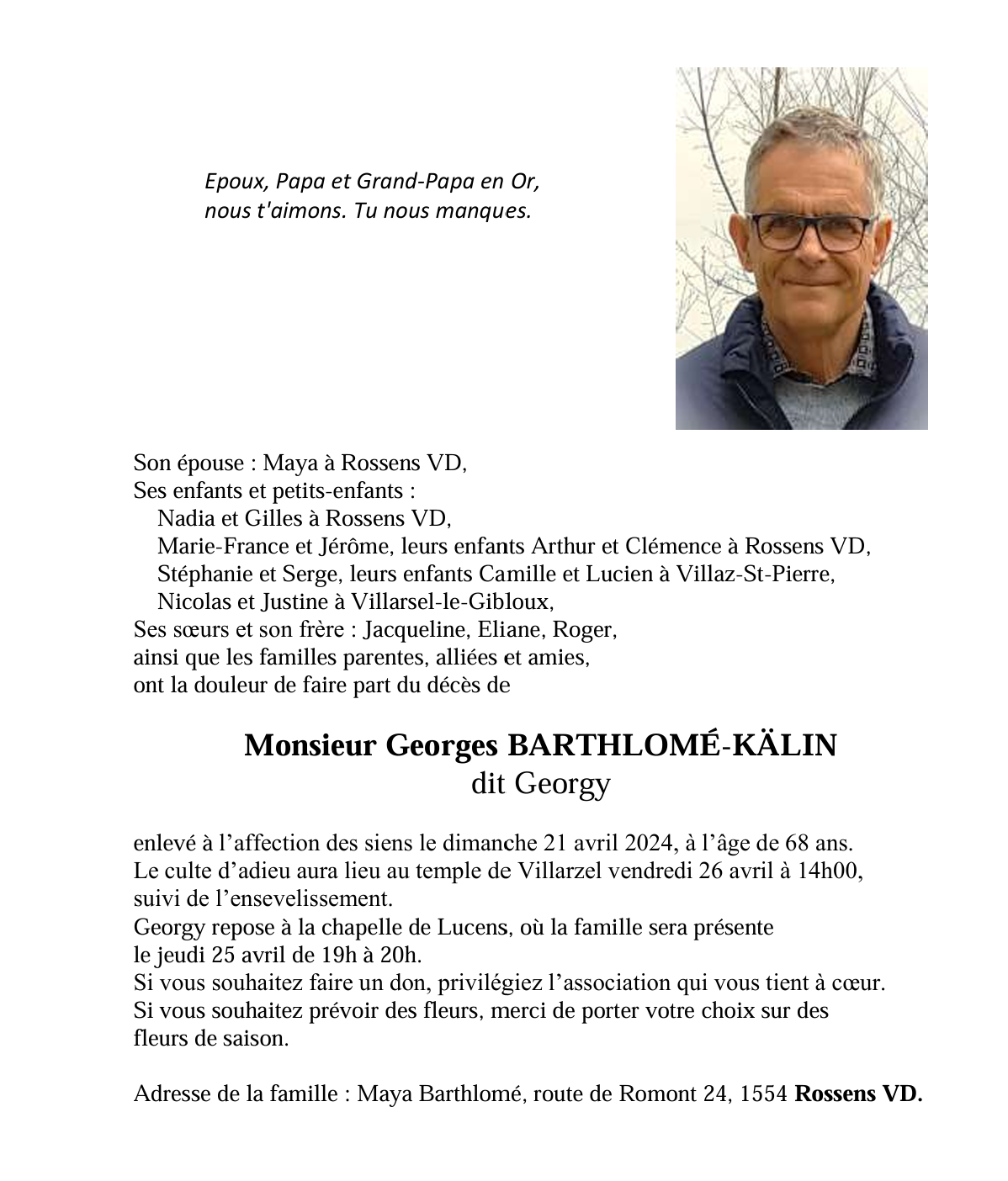 Monsieur Georges BARTHLOMÉ-KÄLIN dit Georgy