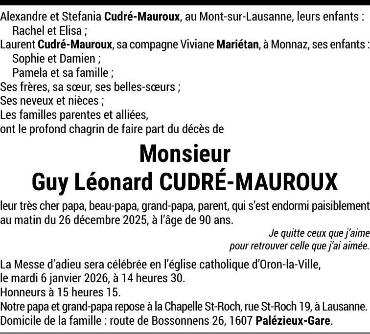 Monsieur Guy Léonard CUDRÉ-MAUROUX