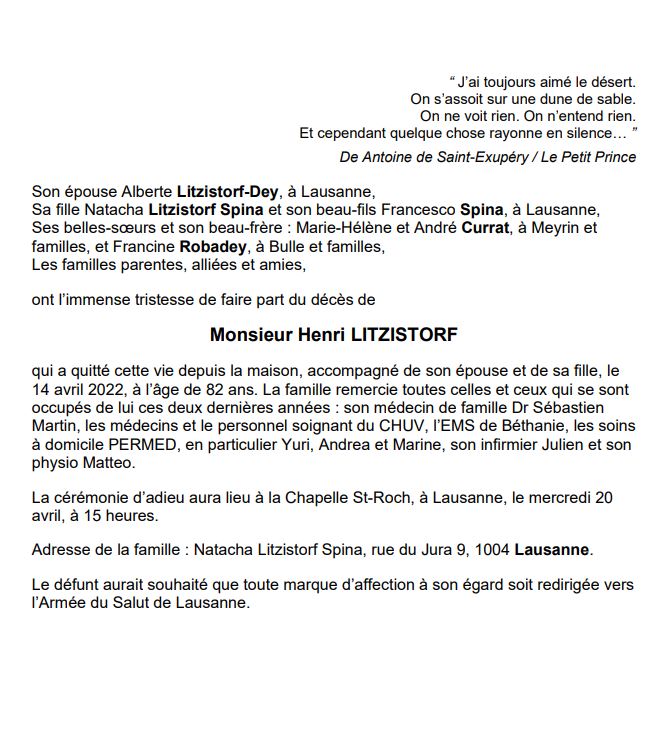 Monsieur Henri LITZISTORF 05 jan. 1940 - 14 avr. 2022 Avis mortuaire PFG Télecharger PDF Partager sur: Galerie PreviousNext PreviousNext