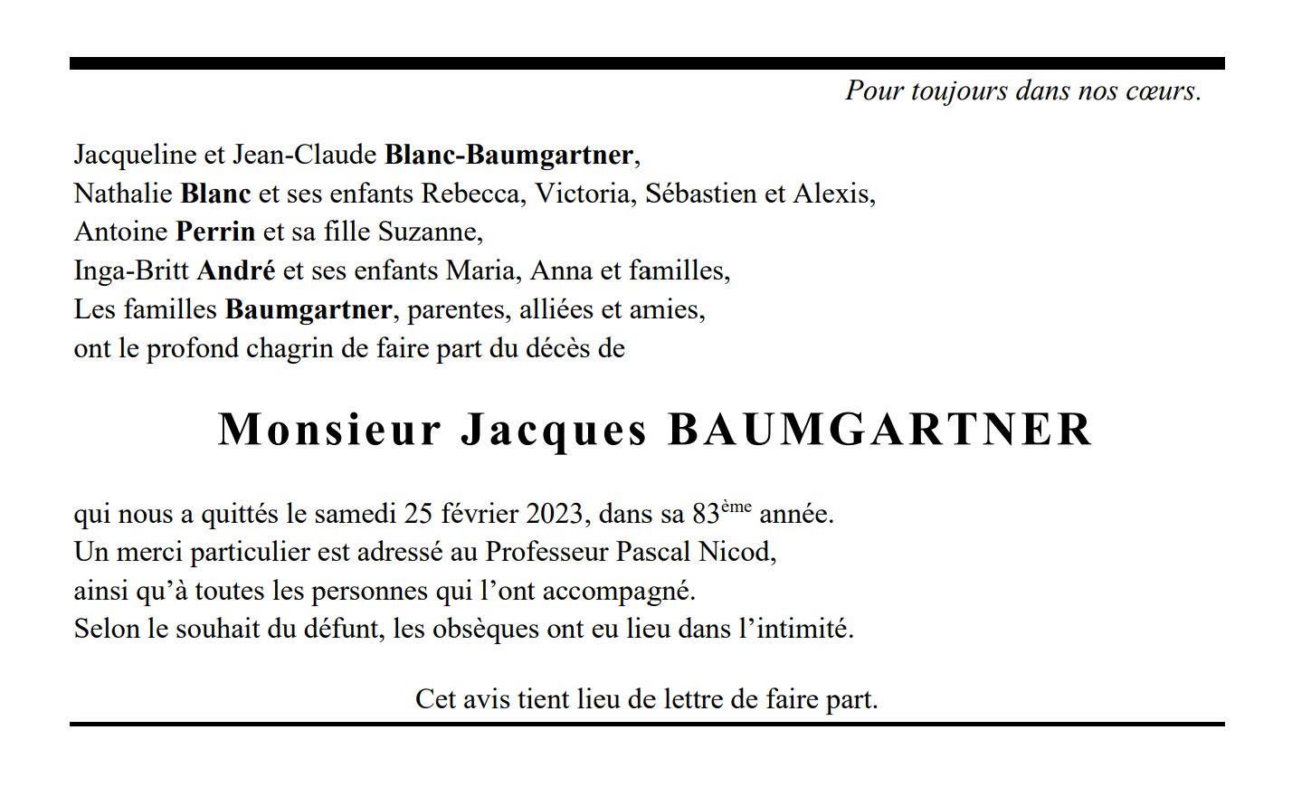 Monsieur Jacques BAUMGARTNER