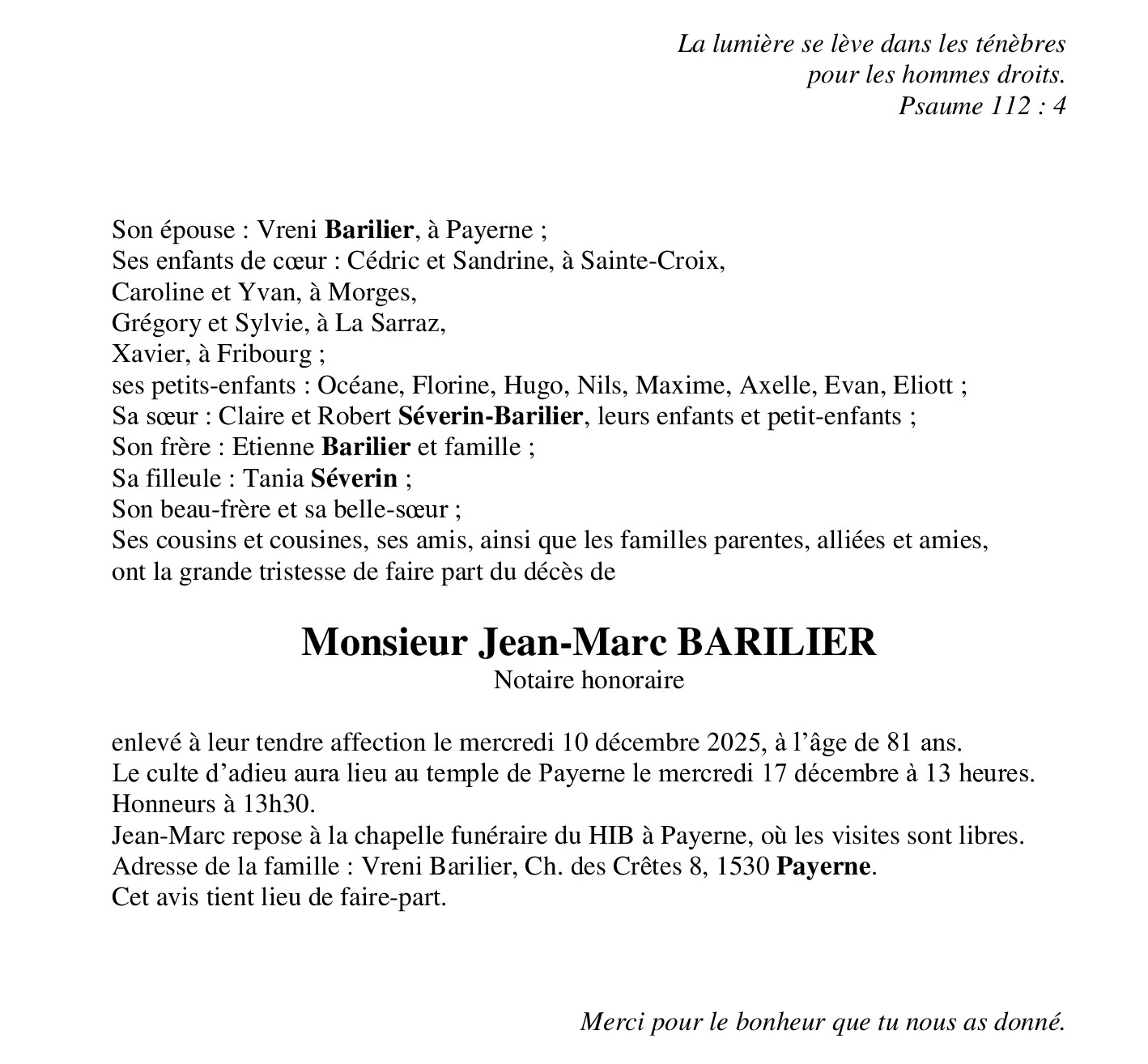 Avis mortuaires / Remerciements