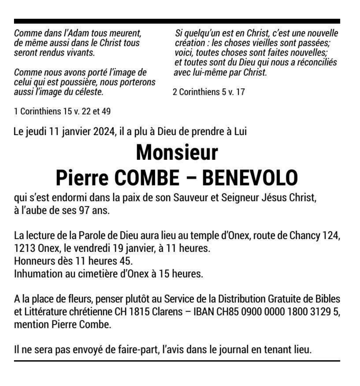 Monsieur Pierre COMBE - BENEVOLO