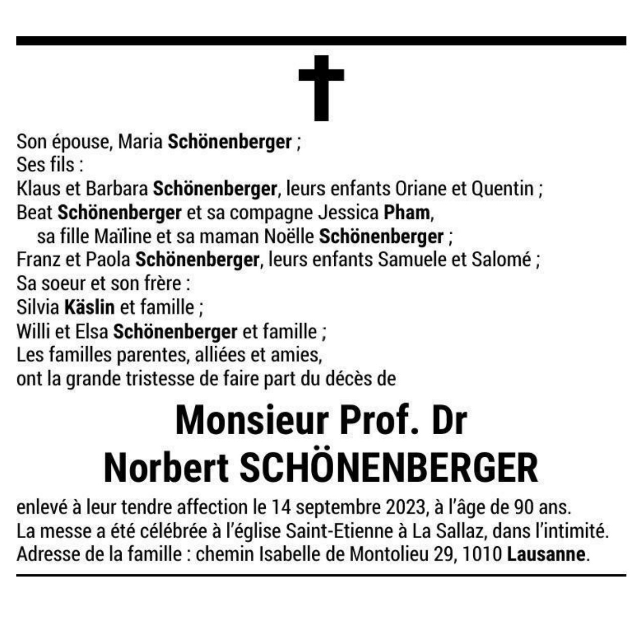 Monsieur Prof. Dr Norbert SCHÖNENBERGER 14 sep. 2023 Avis mortuaire PFG Télecharger PDF Partager sur: Galerie PreviousNext PreviousNext