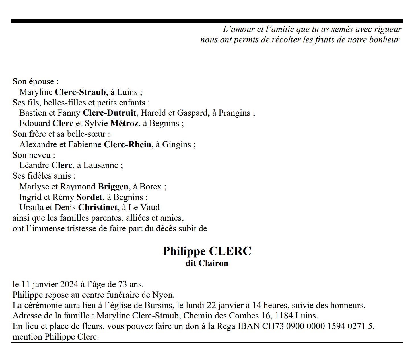 Philippe CLERC dit Clairon 06 juin. 1950 - 11 jan. 2024 Avis mortuaire PFG Télecharger PDF Partager sur: Galerie PreviousNext PreviousNext
