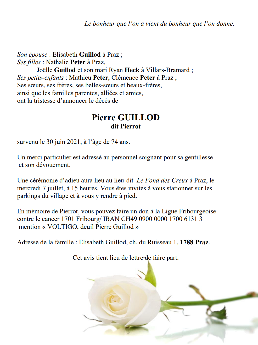 Avis mortuaire PFG